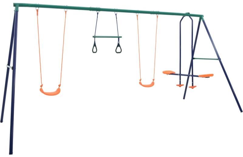 vidaXL kerti hinta készlet 5 db narancssárga üléssel Ez a hinta lesz a gyermekek kedvenc kinti játéka! Akár 5 gyermek is játszhat egyszerre, miközben a lágy szellőt vagy a napfényt élvezik. Ez a kerti hinta készlet erős acélból készült A-alakú vázzal, egy egyszemélyes hintával, egy egymással szemben ülős hintával és egy tandem hintával rendelkezik. Az egymással szembe