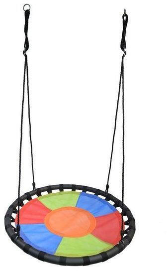 Szivárvány fészekhinta - A kényelmes pihenés szigete a kertben!Képzelje el, hogy a nap melegen simogatja a bőrét, miközben Ön a vidám színekben pompázó szivárvány fészekhintában ringatózik. Ez a tágas, 100 cm átmérőjű hinta igazi kikapcsolódást nyújt akár egyedül, akár a családdal együtt. A maximum 150 kg teherbírású hinta állítható magasságú , így gyerekek
