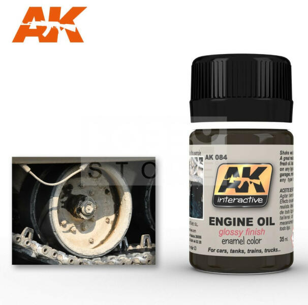 AK-Interactive FRESH ENGINE OIL EFFECTS 35 ml AK084 Enamel alapú általános bemosó-átmosó effect folyadék, mely nagyon sokrétűen használható. Alap technika a makettesek és wargamesek számára. Az Ak Interactive effekt bemosók kiválóan alkalmasak a makettek, figurák koszolására élethű lerakodások (kosz, por, piszok, rozsda) létrehozására. Pigmentekkel keverve is felvihető a