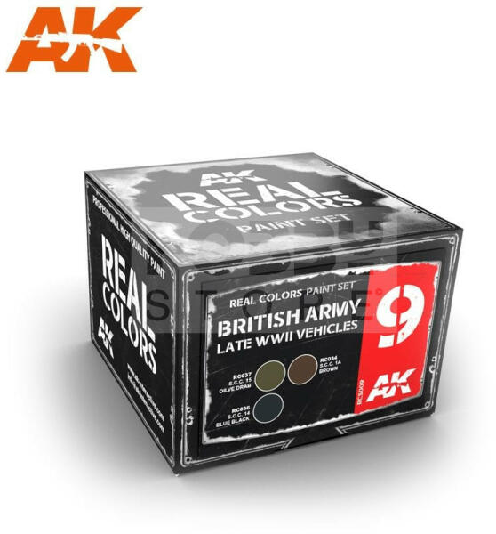 AK Interactive - REAL COLORS BRITISH ARMY LATE WWII VEHICLES SET - festékszett RCS009 Tematikus festékszett 3 darab AK Real Color festékkel. Magas miőségű akril lakk bázisú festékszett modellezéshez-makettezéshez. Használatával a lehető legpontosabb színeket érhetjük el méretarányos modelljeinken. Rendkívül jól használható festékszóróval. Az AK -Interactive Real Color fe