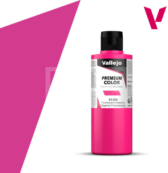 Vallejo Premium RC Colors Fluorescent Magenta akrilffesték (200 ml) 63036V A Vallejo Premium RC sorozatot kifejezetten airbrush (szórópisztoly) használathoz lettek kifejlesztve. Tulajdonságának fő erőssége, hogy optimális tapadást biztosítsanak üvegszál, polietilén, polikarbonát, fém és lexan felületeken. A Premium RC sorozat speciális tartós pigmentekkel és egy új rendkív