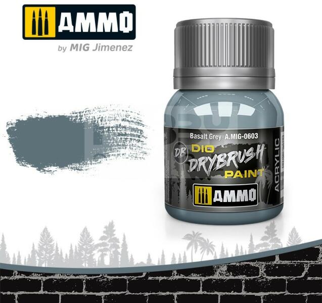 AMMO By Mig - DRYBRUSH Basalt Grey - szárazecsetelő festék 40ml - AMIG0603 Az AMMO Drybrush festékek egy új formulával készült termék mely kifejezetten a szárazecsetelős technikához lett kifejlesztve. Mindenkinek tökéletes megoldás aki szereti ezt a technikát. A DIO Drybrush sorozat világosabb színtónusokból áll hogy kopott megjelenést kölcsönözzön a maketteknek. Az AMMO