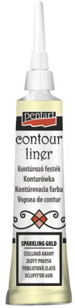 Pentart Kontúrozó festék metál csillogó arany 20 ml 13038 Univerzális, vízbázisú, sűrű festék, mely bármely felületen alkalmazható minták körvonalainak körberajzolására, kiemelésére vagy 3D díszítések készítésére. Üvegfestéshez is kiváló! Száradás után vízálló és mosogatógépben mosható. Metál színek. Termék neveKontúrozó festék, metál - Contour lin