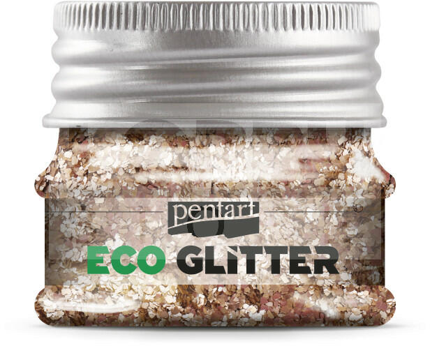 Pentart ECO glitter - rózsaarany - durva 15 gr - 41132 Természetes, csillámpala kőzetőrleményből készült glitter, mely nem tartalmaz műanyagot. Ezüst és rózsaarany színekben és különféle szemcseméretekben elérhető. Kifejezetten elegáns, finom csillogást biztosít. Szórhatjuk öntapadóra száradó ragasztóra (tacky glue), vagy keverhetjük lakkokba, gélekbe és gyantába
