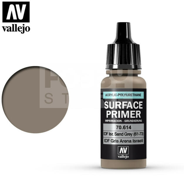 Vallejo Surface Primer IDF Israeli Sand Grey 61-73 alapozófesték 17ml 70614V Mattra száradó akril alapozófesték. A Vallejo Surface Primerek számos árnyalatban kaphatók. Leggyakrabban makettek, modellek, miniatűr figurák, társasjáték figurák felületének előkészítésére használják a festési folyamatok megkezdése előtt. Az alapozó minden felületre felvihető, gyanta, műan