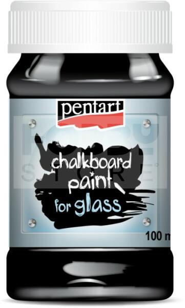 Pentart Táblafesték üvegre fekete 100 ml A festékkel lekent felületre írhatunk krétával, a feliratot vizes ruhával letörölhetjük. A tökéletes fedés érdekében célszerű a festéket 2 rétegben, szivacsecsettel felvinni. A rétegek felkenése között legalább 1 óra száradási időt hagyjunk. A teljes száradás (24 óra) után a festéket sütőben 160 °C fokon 10 percig vagy