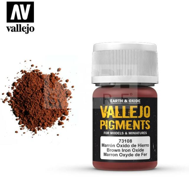 Vallejo Brown Iron Oxide Pigment (barnás vas oxid hatású pigmentpor) 35 ml 73108V Barnás vas oxid hatást érhetünk el maketteken a használatával. A Vallejo Pigmentek kiváló fényállóságú extra finomra őrölt természetes ásványi és szintetikus termékek. Ezen tulajdonságaik megkönnyítik a maketteken és diorámákon való alkalmazásukat. A Vallejo pigmentek egy sor olyan szí