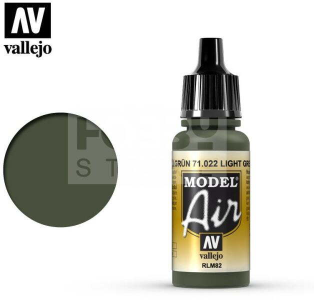 Vallejo Model Air Light Green RLM82 akrilfesték 71022V A Vallejo Model Air széria mattra száradó akrilfesték airbrush (szórópisztoly) használathoz lett kifejlesztve. A színválaszték a közelmúltban használt katonai színek legteljesebb választékát tartalmazza, beleértve az I. és a II. világháborút valamint a napjainkban használt színeket is. Mindegyik Model Air szín a megl
