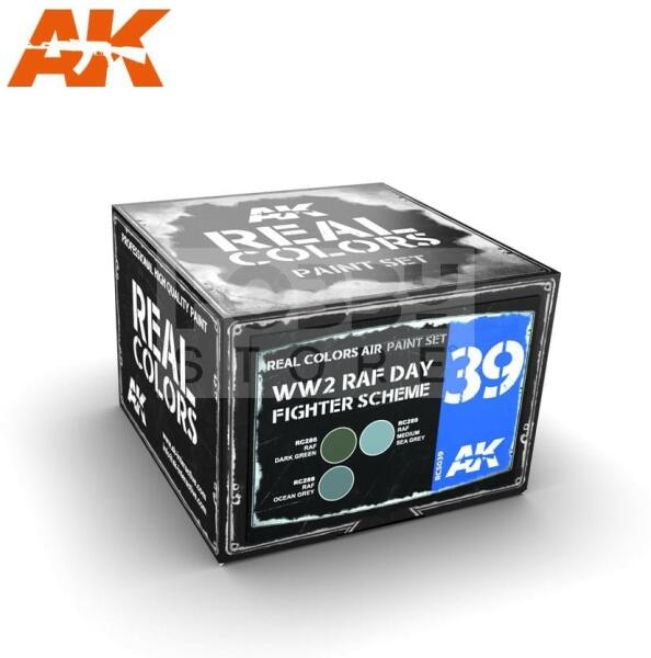 AK Interactive - REAL COLORS WW2 RAF DAY FIGHTER SCHEME - festékszett RCS039 Tematikus festékszett 3 darab AK Real Color festékkel. Magas miőségű akril lakk bázisú festékszett modellezéshez-makettezéshez. Használatával a lehető legpontosabb színeket érhetjük el méretarányos modelljeinken. Rendkívül jól használható festékszóróval. Az AK -Interactive Real Color festékek k