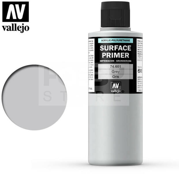 Vallejo Surface Primer Grey alapozófesték 200ml 74601V Mattra száradó akril alapozófesték. A Vallejo Surface Primerek számos árnyalatban kaphatók. Leggyakrabban makettek, modellek, miniatűr figurák, társasjáték figurák felületének előkészítésére használják a festési folyamatok megkezdése előtt. Az alapozó minden felületre felvihető, gyanta, műanyag, fehér fém, fa.