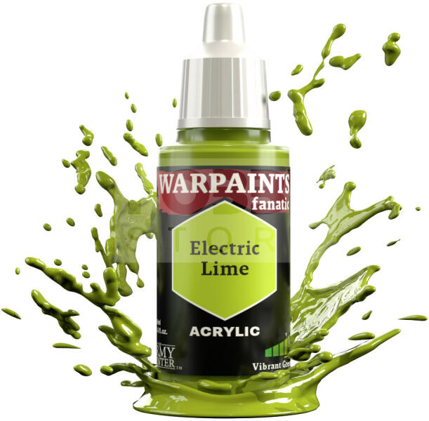The Army Painter Warpaints Fanatic: Electric Lime 18 ml-es akrilfesték WP3058 Az Army Painter Warpaint Fanatic festékeket magas pigmenttartalom és fedőképesség jellemzi. Kiválóan alkalmas a wargame miniatűrök valamint egyéb modellek-makettek festésére. Gyorsan száradó festék, mellyel lerövidíthetjük a festés idejét, mégis fantasztikus eredményt tudunk elérni velük. Teljese