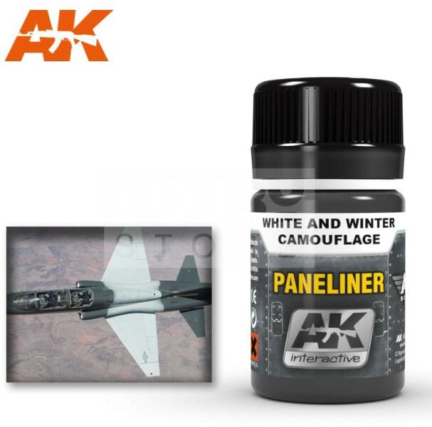 AK-Interactive PANELINER FOR WHITE AND WINTER CAMOUFLAGE 35 ml AK2074 Panelvonal kiemelő folyadék fehér és téli festésű járművekhez. Enamel alapú általános bemosó-átmosó effect folyadék, mely nagyon sokrétűen használható. Alap technika a makettesek és wargamesek számára. Az Ak Interactive effekt bemosók kiválóan alkalmasak a makettek, figurák koszolására élethű lerak