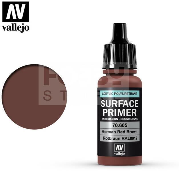 Vallejo Surface Primer Ger. Red Brown alapozófesték 17ml 70605V Mattra száradó akril alapozófesték. A Vallejo Surface Primerek számos árnyalatban kaphatók. Leggyakrabban makettek, modellek, miniatűr figurák, társasjáték figurák felületének előkészítésére használják a festési folyamatok megkezdése előtt. Az alapozó minden felületre felvihető, gyanta, műanyag, fehér f