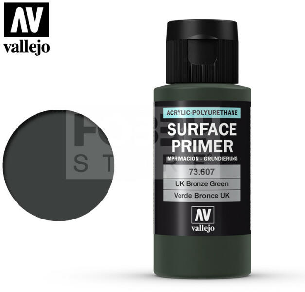 Vallejo Surface Primer U. K. Bronze Green alapozófesték 60ml 73607V Mattra száradó akril alapozófesték. A Vallejo Surface Primerek számos árnyalatban kaphatók. Leggyakrabban makettek, modellek, miniatűr figurák, társasjáték figurák felületének előkészítésére használják a festési folyamatok megkezdése előtt. Az alapozó minden felületre felvihető, gyanta, műanyag, feh