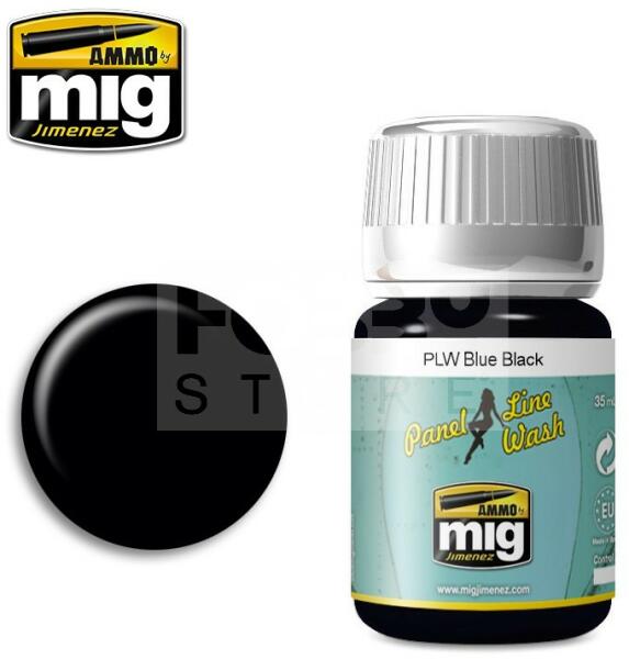 AMMO By Mig - PANEL LINE WASH BLUE BLACK - panelező bemosó folyadék 35ml - AMIG1617 Egyszerűen használható panelvonalak bemosásához használható folyadék makettezőknek. Az AMMO enamel alapú általános bemosó-átmosó, effect és filter folyadékok, melyek nagyon sokrétűen használhatóak. Alap technika a makettesek és wargamesek számára. Az AMMO By Mig effekt bemosók kiválóan
