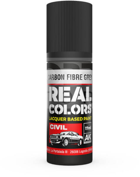 AK-Interactive Real Color - makett festék - Carbon Fibre Grey RC829 Magas miőségű akril lakk bázisú festék modellezéshez-makettezéshez. Használatával a lehető legpontosabb színeket érhetjük el méretarányos modelljeinken. Rendkívül jól használható festékszóróval. Az AK -Interactive Real Color festékek kiváló tapadással és fedőképességgel bírnak, gyorsan száradnak.