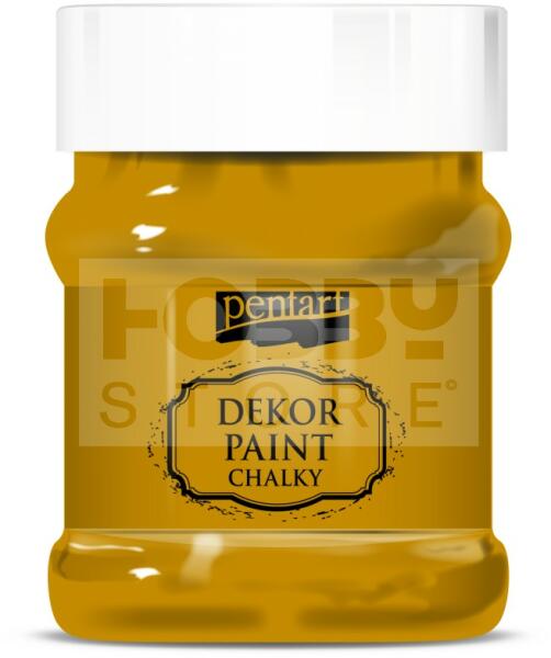 Pentart Dekorfesték lágy (chalky) mustársárga 230 ml 38806 Kiváló fedőképességű, gyorsan száradó, vízbázisú festék. Különleges összetételének köszönhetően matt, lágy tapintású, sima felületet kapunk, ami könnyen csiszolható. Szinte bármilyen anyagra, így fára, kerámiára, fémre, kőre, sőt falfelületre is használható. Kiválóan alkalmas kopott, antik hatás