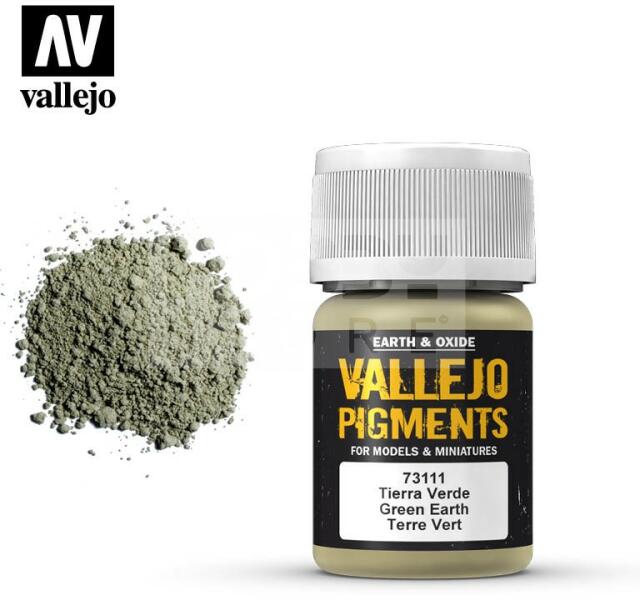 Vallejo Green Earth Pigment (zöld föld hatású pigmentpor) 35 ml 73111V Zöldes föld hatást érhetünk el maketteken a használatával. A Vallejo Pigmentek kiváló fényállóságú extra finomra őrölt természetes ásványi és szintetikus termékek. Ezen tulajdonságaik megkönnyítik a maketteken és diorámákon való alkalmazásukat. A Vallejo pigmentek egy sor olyan színt tartalmaz