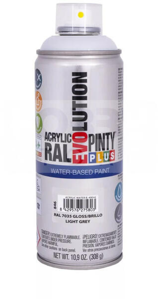 PINTYPLUS EVO AKRIL SPRAY RAL7030 - KŐSZÜRKE (STONE GREY) 400ML PP546 Az PintyPlus Evolution sorozat kiváló minőségű, magas pigmenttartalommal rendelkező, ultra gyorsan száradó, oldószeres akril festék spray család. A palettán 70 különböző szín, 3 lakk, 6 metál spray és 5 fluoreszkáló spray található. Univerzálisan használható, szinte bármilyen felületen. Magas pigmen