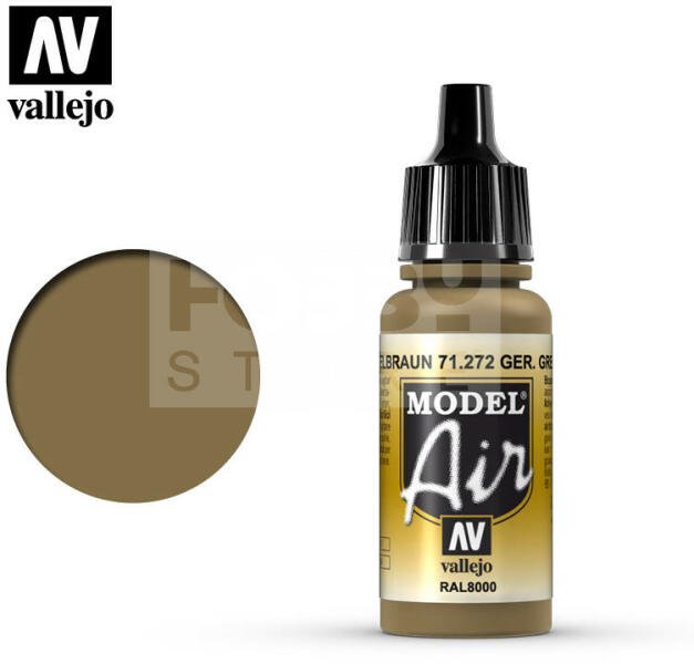 Vallejo Model Air Ger. Green Brown akrilfesték 71272V A Vallejo Model Air széria mattra száradó akrilfesték airbrush (szórópisztoly) használathoz lett kifejlesztve. A színválaszték a közelmúltban használt katonai színek legteljesebb választékát tartalmazza, beleértve az I. és a II. világháborút valamint a napjainkban használt színeket is. Mindegyik Model Air szín a meglé