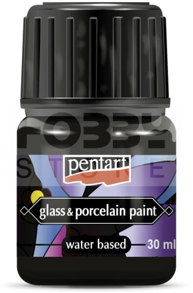 Pentart Üveg és porcelánfesték fekete 30 ml 21347 Fényes, átlátszó vagy fedő, vízbázisú festék üveg-, porcelán- és fémfelületek díszítéséhez. A színek egymással jól keverhetők, világosításukhoz Pentart üveg&porcelánfesték médiumot használjunk. Ügyeljünk arra, hogy a díszítendő felület zsír- és pormentes legyen. Fényes, vízbázisú festék üveg-, por