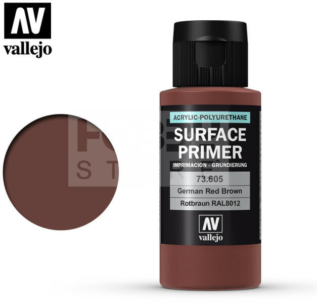 Vallejo Surface Primer Ger. Red Brown alapozófesték 60ml 73605V Mattra száradó akril alapozófesték. A Vallejo Surface Primerek számos árnyalatban kaphatók. Leggyakrabban makettek, modellek, miniatűr figurák, társasjáték figurák felületének előkészítésére használják a festési folyamatok megkezdése előtt. Az alapozó minden felületre felvihető, gyanta, műanyag, fehér f
