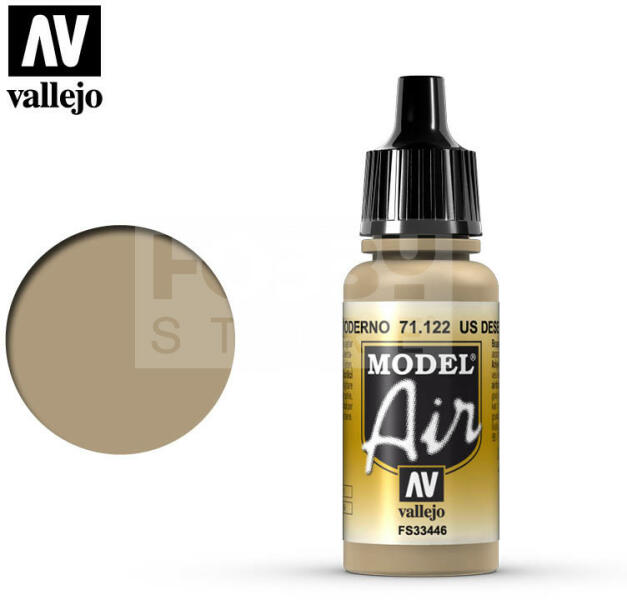 Vallejo Model Air US Desert Armour 686 akrilfesték 71122V A Vallejo Model Air széria mattra száradó akrilfesték airbrush (szórópisztoly) használathoz lett kifejlesztve. A színválaszték a közelmúltban használt katonai színek legteljesebb választékát tartalmazza, beleértve az I. és a II. világháborút valamint a napjainkban használt színeket is. Mindegyik Model Air szín a me
