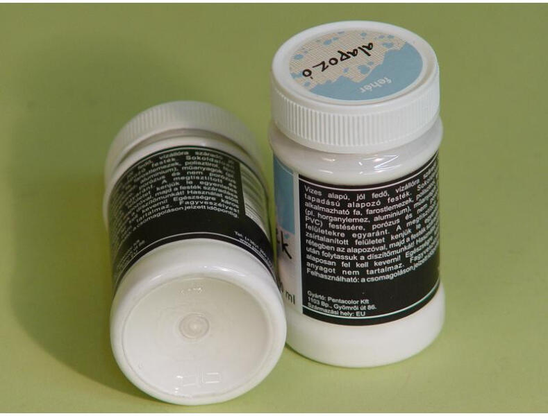 ALAPOZÓ FESTÉK - FEHÉR Vízbázisú alapozó festék bármilyen felületre. Különlegesen ajánlott fa, fém, műanyag és mázas felületek díszítés előtti alapozó festéséhez. Használat előtt alaposan fel kell keverni! Méret: 100ml ALAPOZÓ FESTÉK - FEHÉR Vízbázisú alapozó festék bármilyen felületre. Különlegesen ajánlott fa, fém, műanyag és mázas felületek díszít