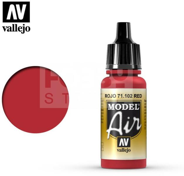Vallejo Model Air Red akrilfesték 71102V A Vallejo Model Air széria mattra száradó akrilfesték airbrush (szórópisztoly) használathoz lett kifejlesztve. A színválaszték a közelmúltban használt katonai színek legteljesebb választékát tartalmazza, beleértve az I. és a II. világháborút valamint a napjainkban használt színeket is. Mindegyik Model Air szín a meglévő és korá