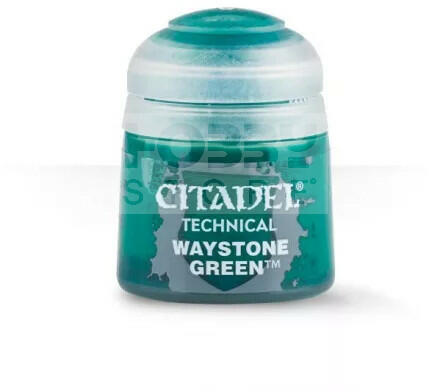 Citadel Colour Technical - Waystone Green 12 ml akrilfesték 27-14 A Citadel Technical kategória alatt találhatóak meg a speciális effektek és a festéssegítő eszközök széles palettája. Magában foglalja a különböző talajeffekteket dioráma és talapzat (base) építésekhez, fényes és matt lakkokat , sima és contrast festékekhez hígítókat , ékkövek festéséhez való fest