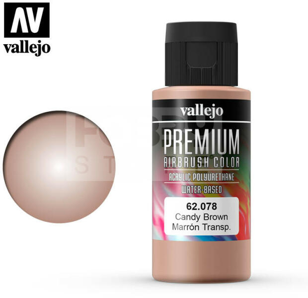 Vallejo Premium RC Colors Candy Brown akrilfesték (60 ml) 62078V A Vallejo Premium RC sorozatot kifejezetten airbrush (szórópisztoly) használathoz lettek kifejlesztve. Tulajdonságának fő erőssége, hogy optimális tapadást biztosítsanak üvegszál, polietilén, polikarbonát, fém és lexan felületeken. A Premium RC sorozat speciális tartós pigmentekkel és egy új rendkívül ellená