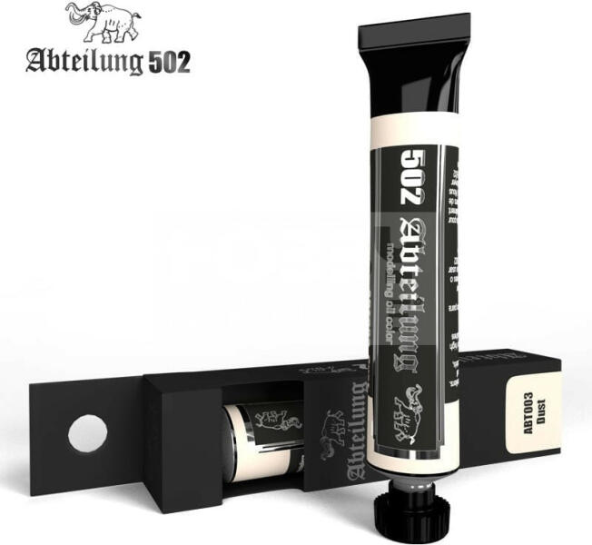 Abteilung502 - DUST - Por színű olajfesték 20 ml - ABT003 Az Abteilung502 olajfesték család egy kiváló minőségű termék kifejezetten makettezőknek, és figura festőknek kifejlesztve. A termékekben kevesebb lenolaj található, így meggátolva, hogy a száradás után foltos maradjon a felület. Hihetetlen finom munkát tudunk végezni és nagyszerű hatásokat érhetünk el az Abteil