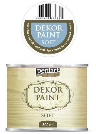 Pentart Dekorfesték lágy (chalky) lenkék 500 ml 22725 Kiváló fedőképességű, gyorsan száradó, vízbázisú festék. Különleges összetételének köszönhetően matt, lágy tapintású, sima felületet kapunk, ami könnyen csiszolható. Szinte bármilyen anyagra, így fára, kerámiára, fémre, kőre, sőt falfelületre is használható. Kiválóan alkalmas kopott, antik hatás elér