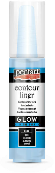 Pentart Kontúrozó festék GLOW kék 20 ml 17497 Univerzális, vízbázisú, sűrű festék, mely bármely felületen alkalmazható minták körvonalainak körberajzolására, kiemelésére vagy 3D díszítések készítésére. Üvegfestéshez is kiváló! Száradás után vízálló és mosogatógépben mosható. Sötétben világító színek. Termék neveKontúrozó festék, sötétben világ