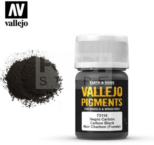 Vallejo Carbon Black (Smoke Black) Pigment (fekete füst színű pigmentpor) 35 ml 73116V Fekete füst hatású pigment por makettek koszolásához. A Vallejo Pigmentek kiváló fényállóságú extra finomra őrölt természetes ásványi és szintetikus termékek. Ezen tulajdonságaik megkönnyítik a maketteken és diorámákon való alkalmazásukat. A Vallejo pigmentek egy sor olyan színt ta
