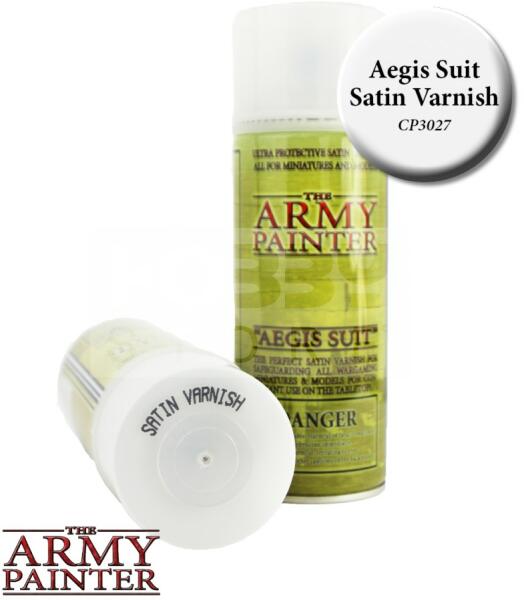 The Army Painter Base Primer - Aegis Suit, Satin Varnish Spray (szatén lakk) CP3027 Az Army Painter Color Primer spray-k nagyszerő fedőképességű formulával rendelkeznek. Kiválóan alkalmasak műanyag, fém és gyanta figurák makettek alapozásához. Extra finom pigmentet tartalmaznak és a speciális fúvókának köszönhetően rendkívül könnyen fújhatók fel a kívánt felületre. A