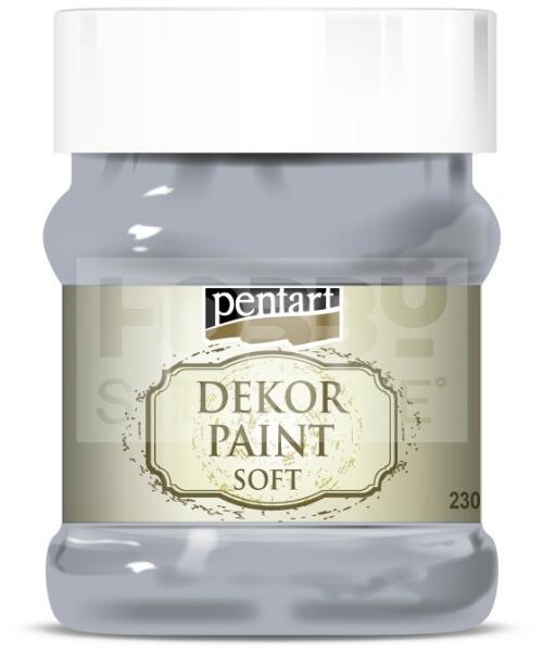 Pentart Dekorfesték lágy (chalky) szürke 230 ml 21661 Kiváló fedőképességű, gyorsan száradó, vízbázisú festék. Különleges összetételének köszönhetően matt, lágy tapintású, sima felületet kapunk, ami könnyen csiszolható. Szinte bármilyen anyagra, így fára, kerámiára, fémre, kőre, sőt falfelületre is használható. Kiválóan alkalmas kopott, antik hatás elér