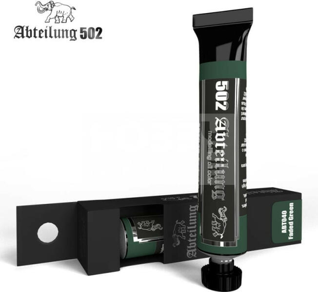 Abteilung502 - FADED GREEN - Fakózöld színű olajfesték 20 ml - ABT040 Az Abteilung502 olajfesték család egy kiváló minőségű termék kifejezetten makettezőknek, és figura festőknek kifejlesztve. A termékekben kevesebb lenolaj található, így meggátolva, hogy a száradás után foltos maradjon a felület. Hihetetlen finom munkát tudunk végezni és nagyszerű hatásokat érhetün