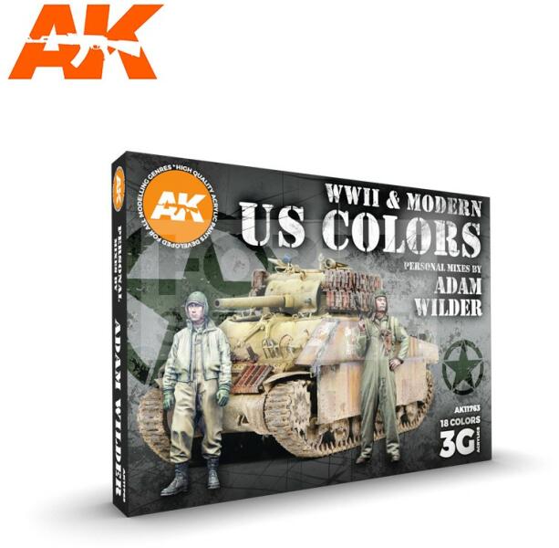 AK Interactive SIGNATURE SET – ADAM WILDER 3G AK11763 Tematikus festékszett 18 darab AK Interactive 3. generációs festékkel . Új formulával rendelkező magas fedőképességű festék mely kiválóan alkalmas festékszóróval és ecsettel való használatra egyaránt. Speciális összetevőinek köszönhetően nem tömődik el festékszórónk, és felrázás után azonnal használható e