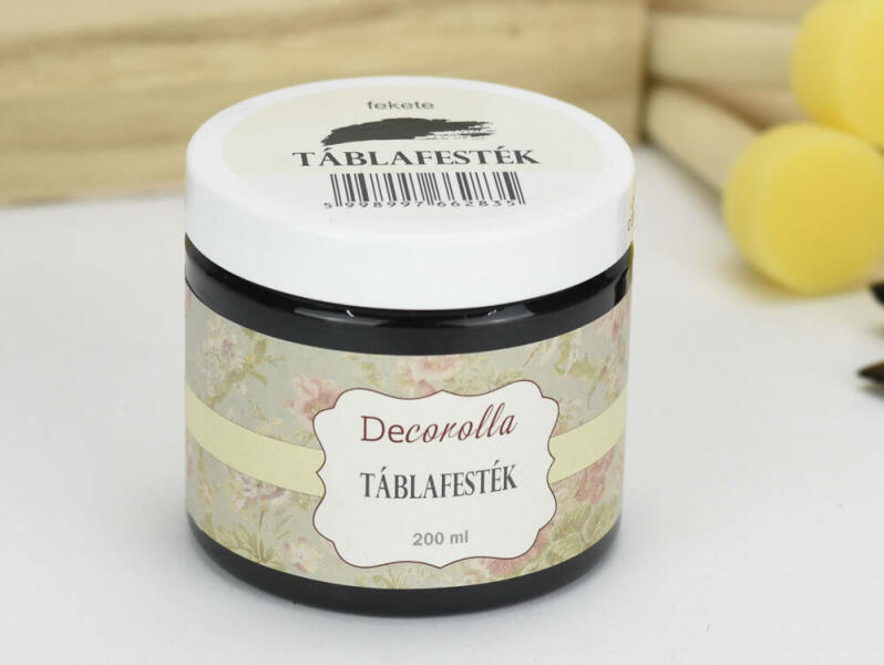 Táblafesték. Fára, falra, papírra, feszített vászonra alkalmazható, vízbázisú festék. A lefestett felületre krétával írhatunk, a feliratot vizes ruhával letörölhetjük. A lecsiszolt, portalanított felületet széles ecsettel vagy szivacshengerrel fessük le. Méret:200ml