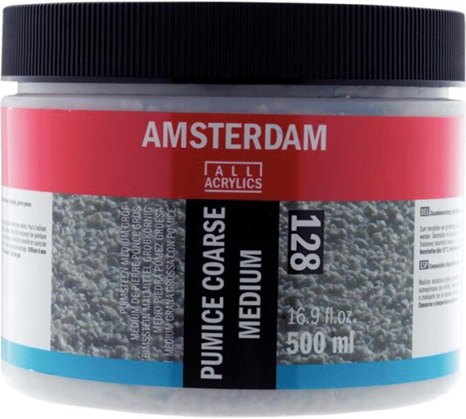 Habkő vastag médium 128 - 500 ml Cél: durva szemcsés szerkezetet és domborművet hoz létre. Összetétel: akrilgyanta diszperzió, durvára őrölt habkő. Tulajdonságok: - Alkalmazható közvetlenül vagy akril festékkel keverve. - Átkenhető akril festékkel. - Vastag rétegekben alkalmazható. - Száradás után vízálló. - Használja 10°C feletti hőmérsékleten. - Fagyálló és
