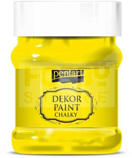 Pentart Dekorfesték lágy (chalky) citromsárga 230 ml 38808 Kiváló fedőképességű, gyorsan száradó, vízbázisú festék. Különleges összetételének köszönhetően matt, lágy tapintású, sima felületet kapunk, ami könnyen csiszolható. Szinte bármilyen anyagra, így fára, kerámiára, fémre, kőre, sőt falfelületre is használható. Kiválóan alkalmas kopott, antik hatás e