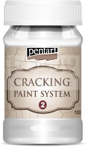 Pentart Repedőfesték fehér 100 ml 22691 Második komponense egy kétkomponensű, vízbázisú rendszernek repedezett, könnyen csiszolható, kopott felület kialakításához. Először az 1. komponenssel kenjük le vékony, egyenletes rétegben a felületet, majd ha megszáradt ecsettel vagy spatulával vigyük fel a repedő festéket. Száradás közben a festék megrepedezik, a repedések h