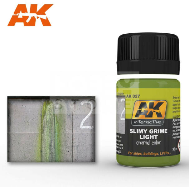 AK-Interactive SLIMY GRIME LIGHT 35 ml AK027 Enamel alapú általános bemosó-átmosó effect folyadék, mely nagyon sokrétűen használható. Alap technika a makettesek és wargamesek számára. Az Ak Interactive effekt bemosók kiválóan alkalmasak a makettek, figurák koszolására élethű lerakodások (kosz, por, piszok, rozsda) létrehozására. Pigmentekkel keverve is felvihető a felül