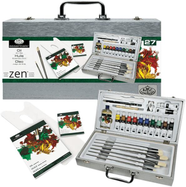 Olajfestmény készlet fadobozban - Royal & Langnickel ZEN - 27 db-os készlet Ezt a művészeti készletet kifejezetten azoknak a művészeknek tervezték, akik új készségeket akarnak megtanulni. Ez magában foglalja az összes kiváló minőségű művészeti készletet, amely az induláshoz szükséges. A fadobozban minden rendben van, és kényelmes tárolást kínál. Tippeket és tech