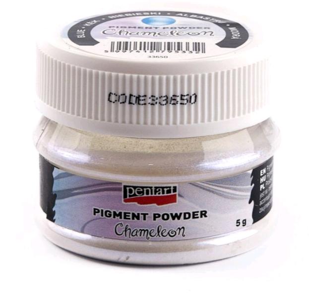 Chameleon, színjátszó pigmentpor Pigmentporokkal egyszerűen különleges színhatásokat tudunk elárni. Ez lehet foszforeszkáló, csillogó, metálos, fémes, vagy effect finoman színjátszó. A használt üvegfestékhez vagy gélhez, pasztához, lakkhoz lehet keverni a pigmentport és így festeni, díszíteni a kívánt felületet. Fémes és csillogó színhatása a sötét színű felü