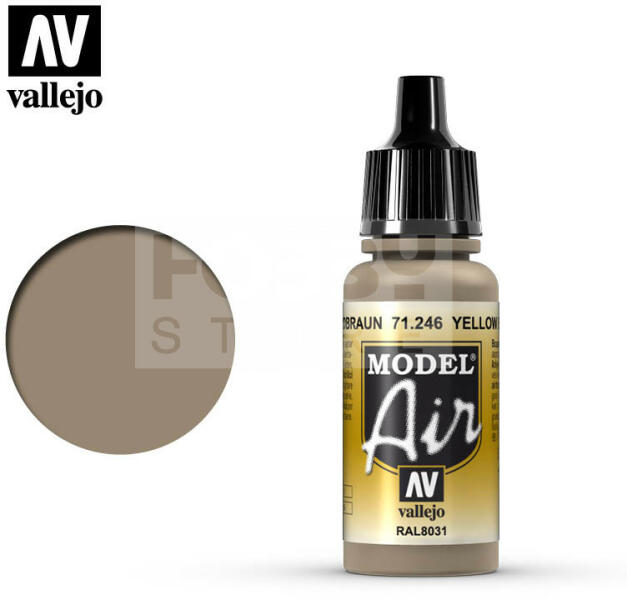 Vallejo Model Air Camouflage Sandbrown RAL 8031 akrilfesték 71246V A Vallejo Model Air széria mattra száradó akrilfesték airbrush (szórópisztoly) használathoz lett kifejlesztve. A színválaszték a közelmúltban használt katonai színek legteljesebb választékát tartalmazza, beleértve az I. és a II. világháborút valamint a napjainkban használt színeket is. Mindegyik Model Air s