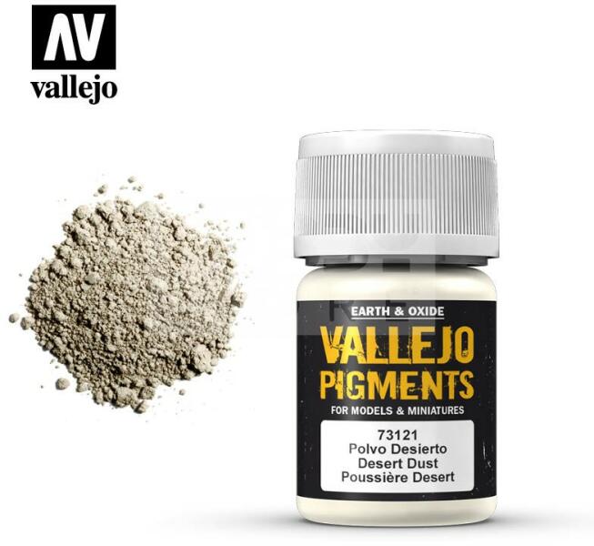 Vallejo Desert Dust Pigment (sivatagi por színű pigment) 35 ml 73121V A Vallejo Pigmentek kiváló fényállóságú extra finomra őrölt természetes ásványi és szintetikus termékek. Ezen tulajdonságaik megkönnyítik a maketteken és diorámákon való alkalmazásukat. A Vallejo pigmentek egy sor olyan színt tartalmaz amivel könnyedén jeleníthetjük meg a járművekre és épületekr