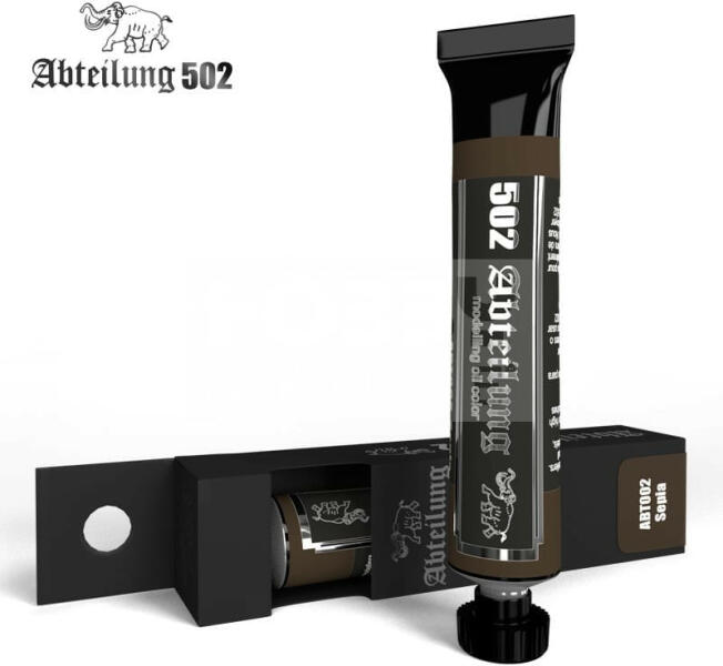 Abteilung502 - SEPIA - Szépia színű olajfesték 20 ml - ABT002 Az Abteilung502 olajfesték család egy kiváló minőségű termék kifejezetten makettezőknek, és figura festőknek kifejlesztve. A termékekben kevesebb lenolaj található, így meggátolva, hogy a száradás után foltos maradjon a felület. Hihetetlen finom munkát tudunk végezni és nagyszerű hatásokat érhetünk el az A
