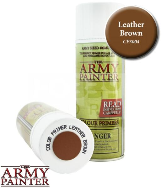 The Army Painter Colour Primer - Leather Brown alapozó Spray CP3004 Az Army Painter Color Primer spray-k nagyszerő fedőképességű formulával rendelkeznek. Kiválóan alkalmasak műanyag, fém és gyanta figurák makettek alapozásához. Extra finom pigmentet tartalmaznak és a speciális fúvókának köszönhetően rendkívül könnyen fújhatók fel a kívánt felületre. Az Army Painter a